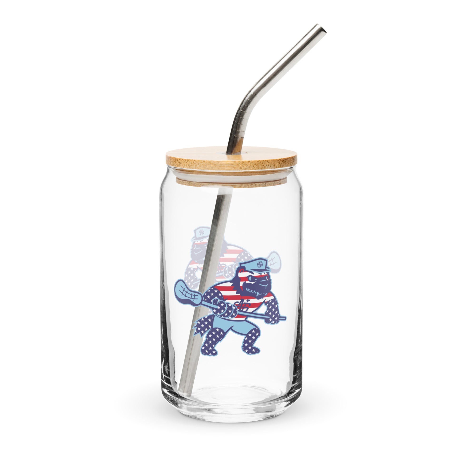 North Stafford Lacrosse USA Can-Shaped Glass w/ Lid & Straw (16 oz)